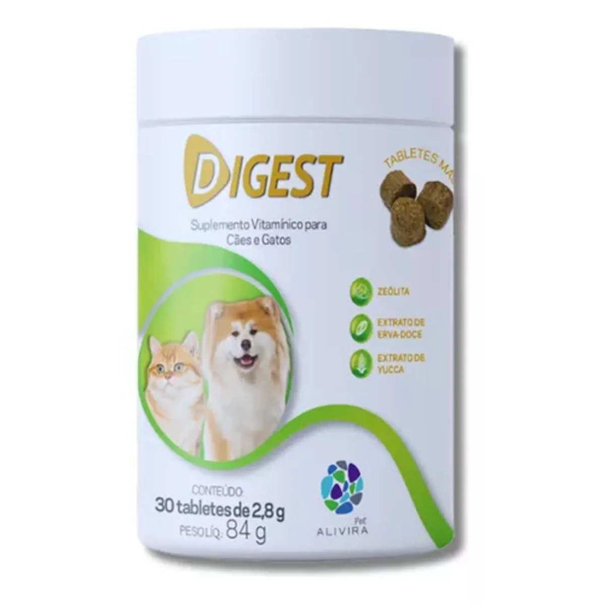 Digest é um suplemento vitamínico que além de nutrir contribui para uma melhor digestão dos alimentos. Indicado para cães e gatos adultos.